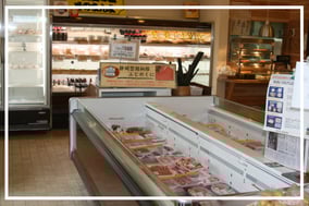 店内には、安心・安全な原料を厳選し、添加物を一切使用しない自家配合の肥料で元気にすくすく育った「とんきい」自慢の豚肉が並びます。