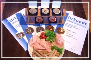 無添加の加工品ではなかなかメダルを取るのが難しい食肉見本市にて、とんきいのハム・ソーセージは、銀賞3個・銅賞2個受賞しました。